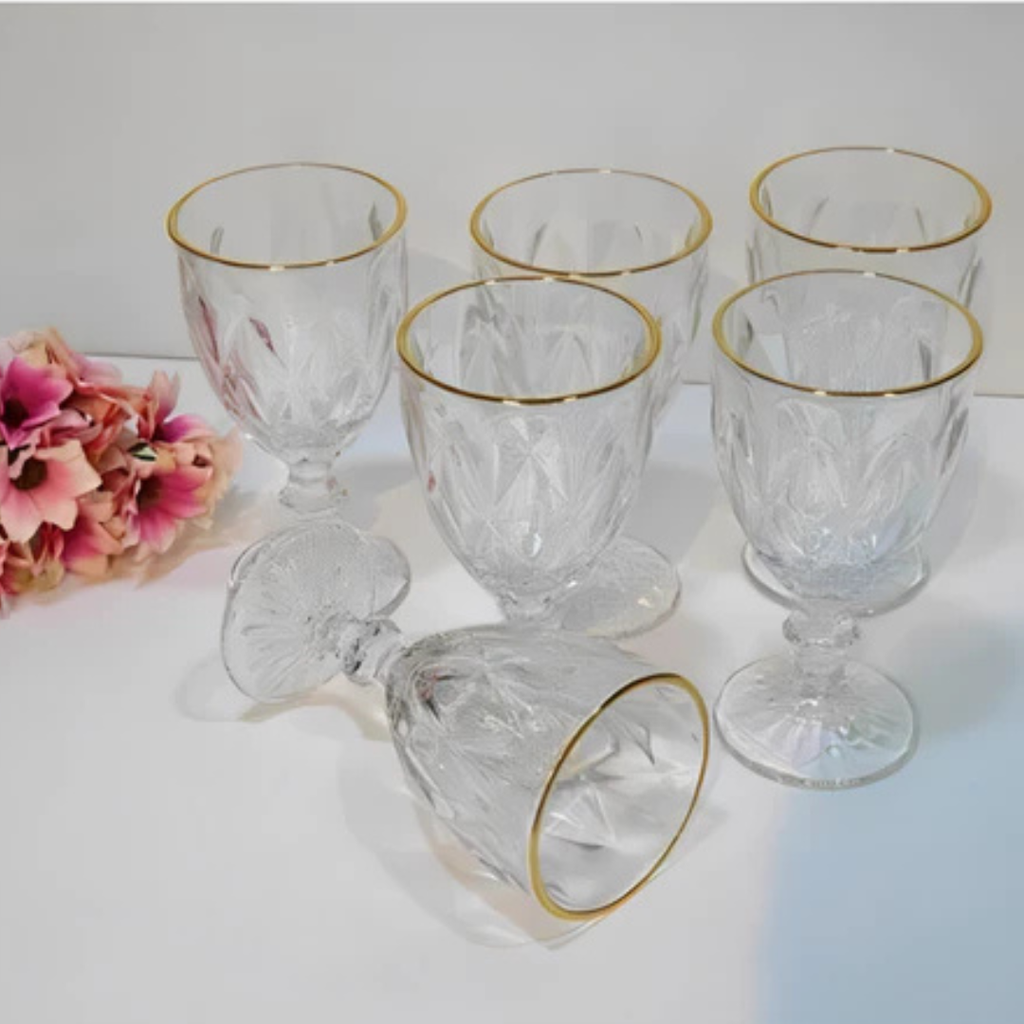 Eleve seus momentos especiais com o Jogo de 6 Taças Diamond. Com design sofisticado e borda dourada, essas taças são perfeitas para quem busca requinte e exclusividade. Ideal para servir vinhos, espumantes ou drinks, elas adicionam um toque de glamour à sua mesa, tornando cada celebração inesquecível. A transparência cristalina realça a cor da bebida, enquanto o detalhe dourado reflete luxo e bom gosto.